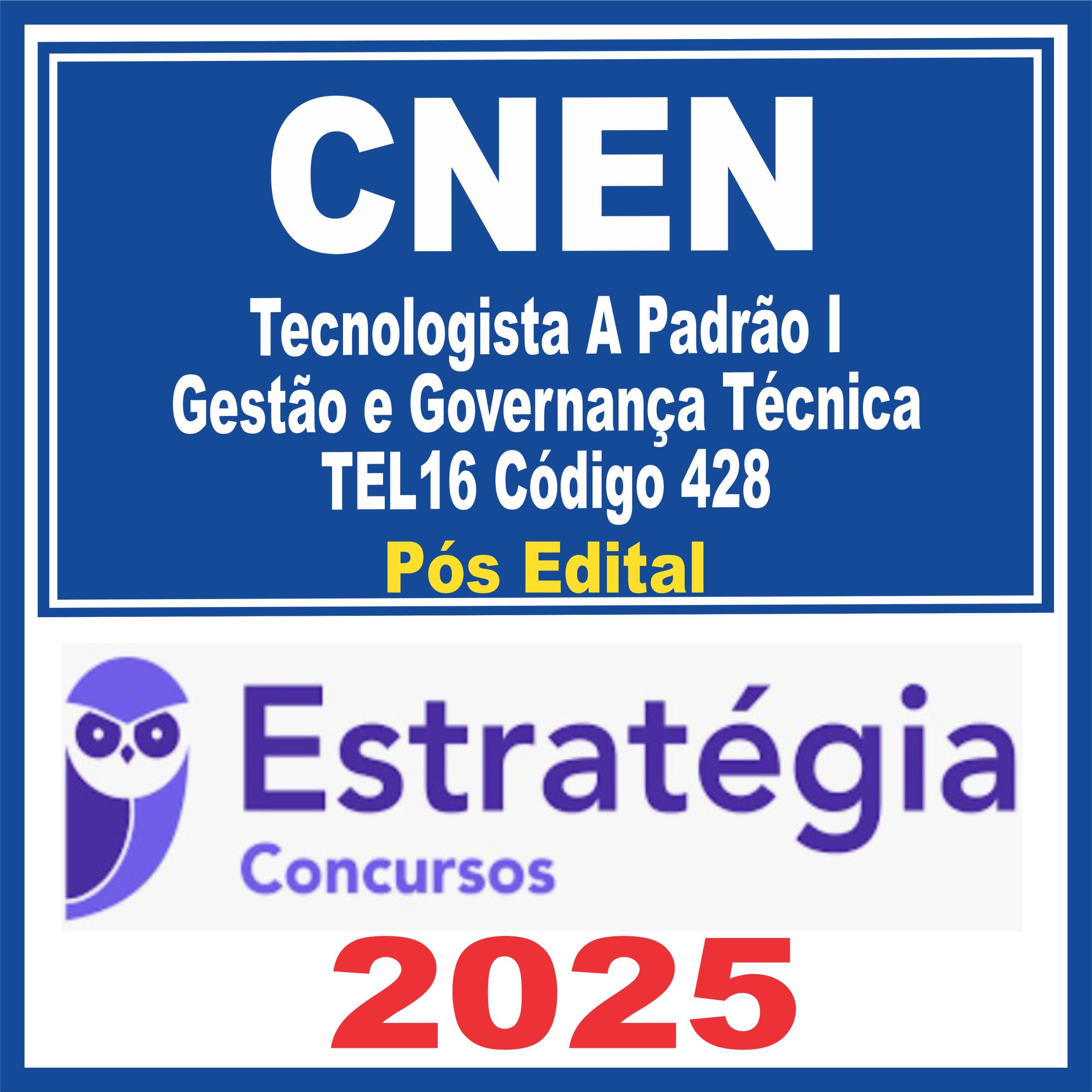 CNEN (Tecnologista A Padrão I – Gestão e Governança Técnica – TEL16 Código 428) Pós Edital – Estratégia 2025