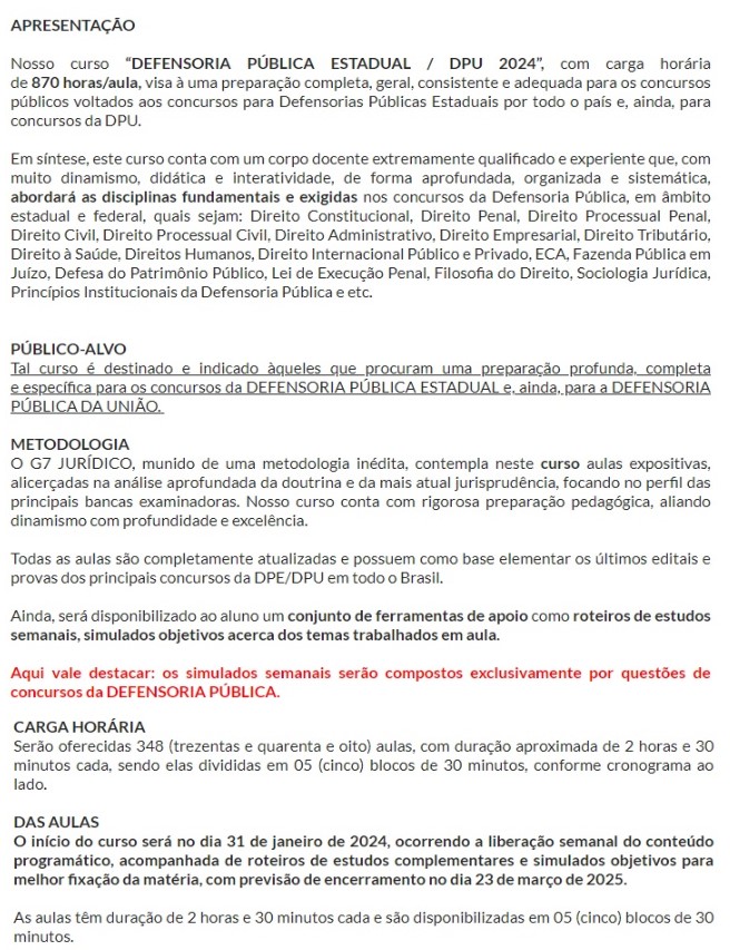 Curso Defensoria Pública Estadual, DPU – G7 Jurídico 2024