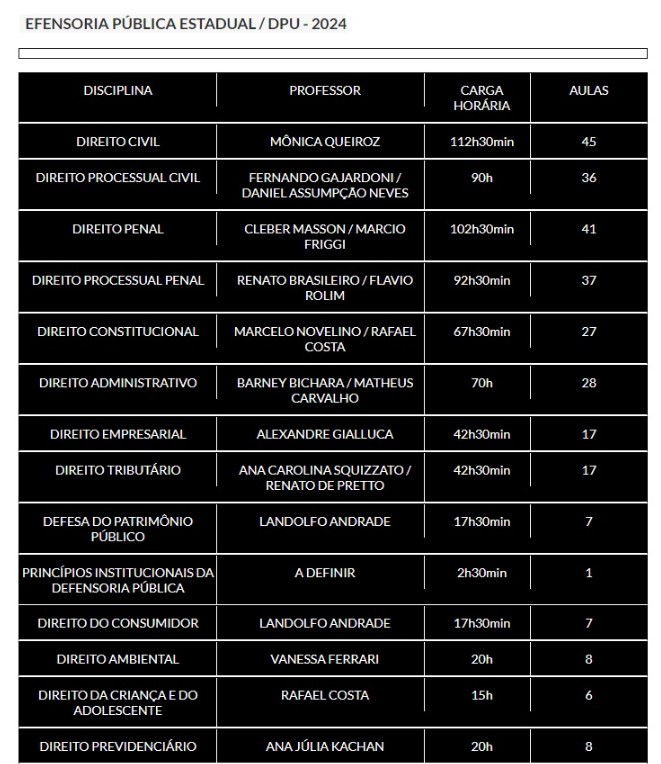 - Estudantes que desejam uma compreensão completa e aprofundada das disciplinas exigidas nos concursos de defensoria pública.